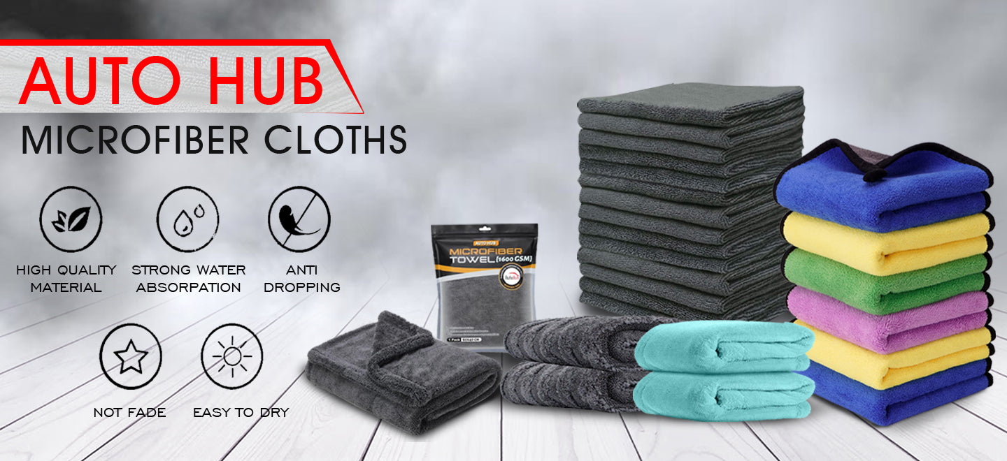 Auto Hub Heavy Microfiber Cloth for Car Cleaning and Detailing, Double Sided, Extra Thick Plush Microfiber Towel Lint-Free, 1200 GSM
