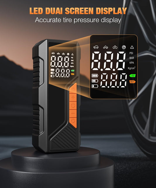 150PSI Cordless Tyre Inflator for Car & Bike - Orange - (12 Month) Warranty