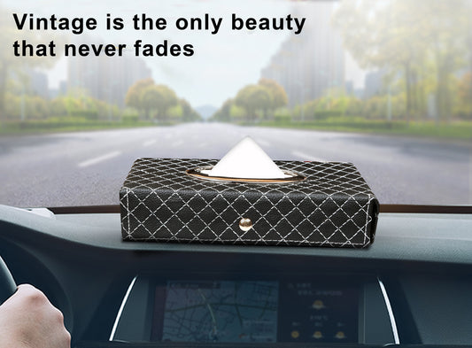 Auto Hub Faux Leather Car Tissue Holder Box, Tissue Paper Box for Car with 100 Tissue Pulls - Cross Texture -Black