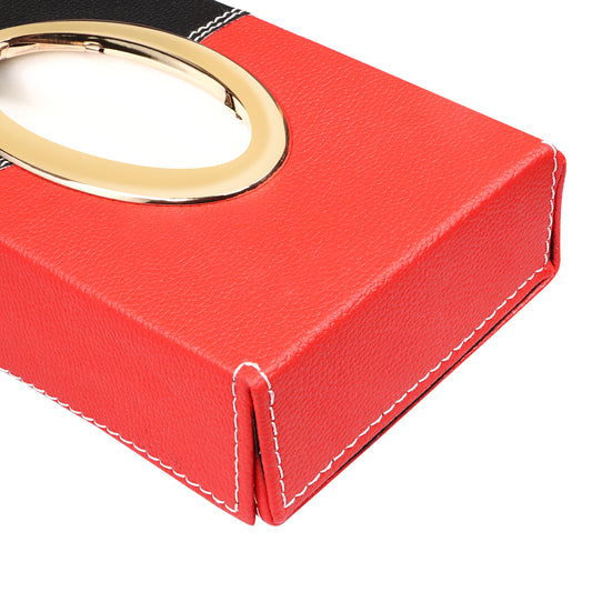 Auto Hub Leather Car Tissue Holder Box for Car, Home, Office with 100 Tissue Pulls - Chrome -Black-Red