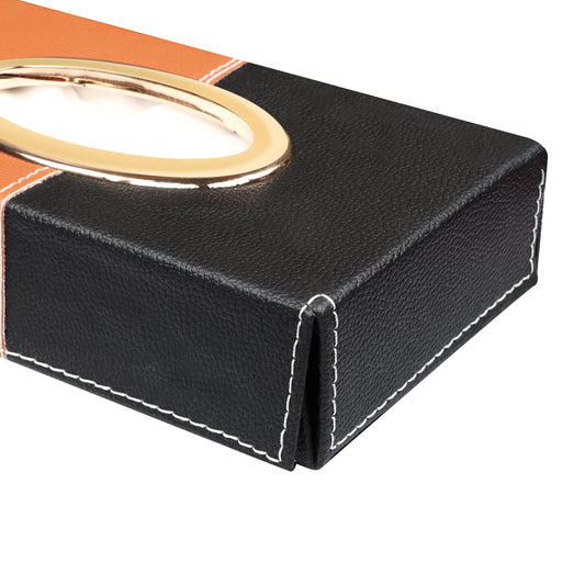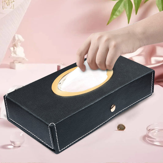 Auto Hub Leather Car Tissue Holder Box for Car, Home, Office with 100 Tissue Pulls - Chrom -Black