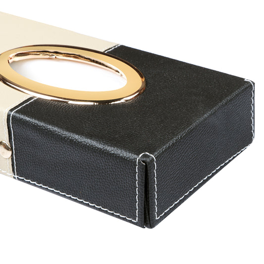 Auto Hub Leather Car Tissue Holder Box for Car, Home, Office with 100 Tissue Pulls - Chrome -Beige-Black