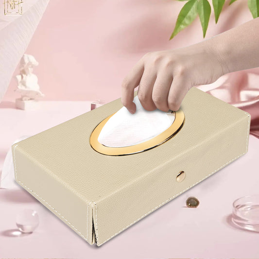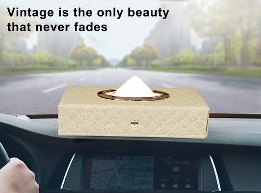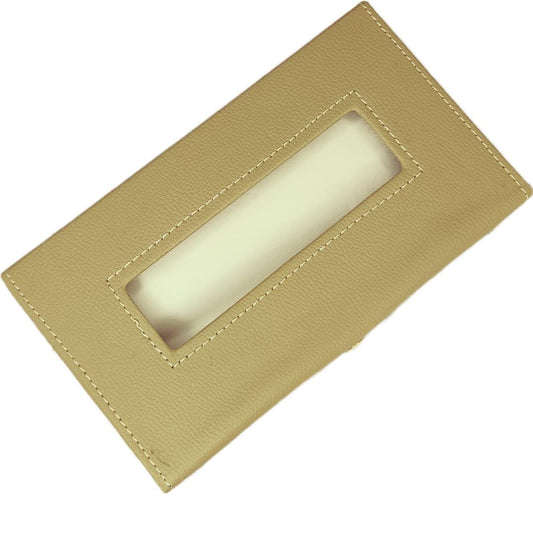 Auto Hub Leather Car Tissue Holder Box for Car, Home, Office with 100 Tissue Pulls - Basic -Beige