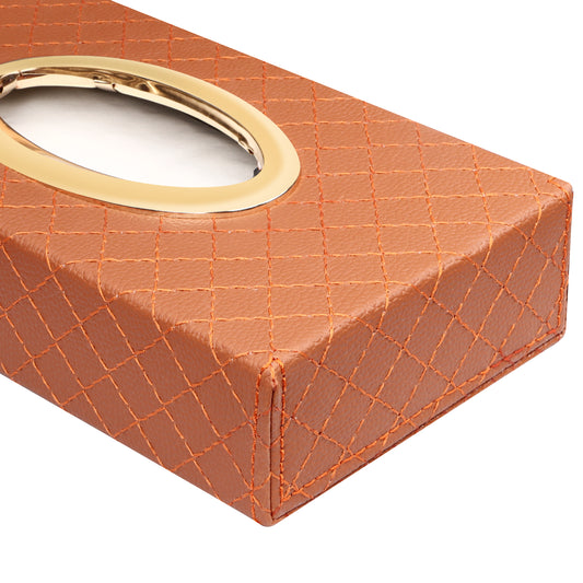 Auto Hub Leather Car Tissue Holder Box for Car, Home, Office with 100 Tissue Pulls - Cross -Tan